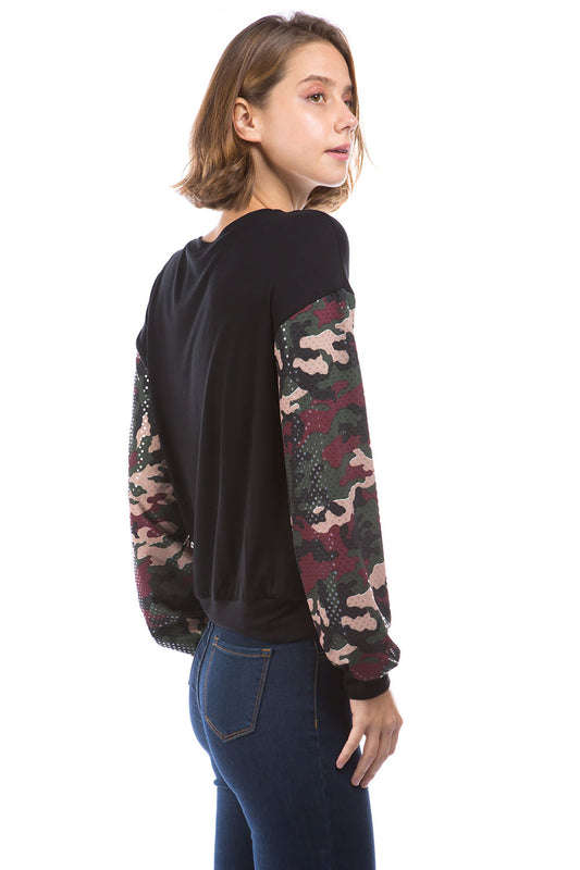 LAUREN SEQUINS CAMO SLEEVE TOP (BLACK / SEQUINS CAMO )- VT2876