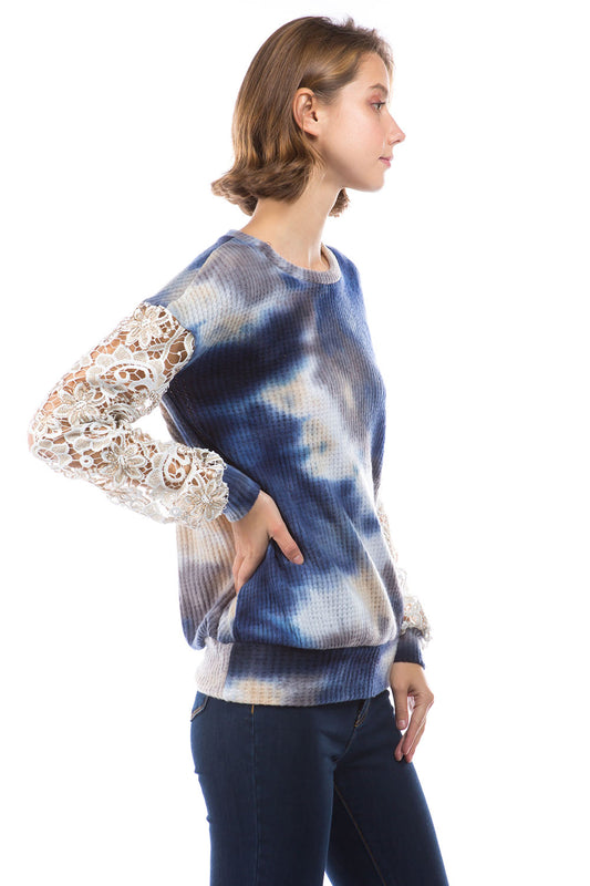 LAUREN LACE SLEEVE TOP (BRUSH TAUPE BLUE / IVORY LACE)- VT2876