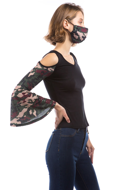 LAUREN BELL SLEEVE TOP (BLACK / SEQUINS CAMO)- VT2878