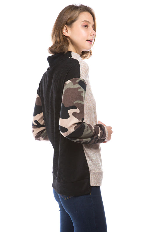 LAUREN TURTLE NECK TOP (OATMEAL 5x4 RIB / BROWN CAMO)- VT2880