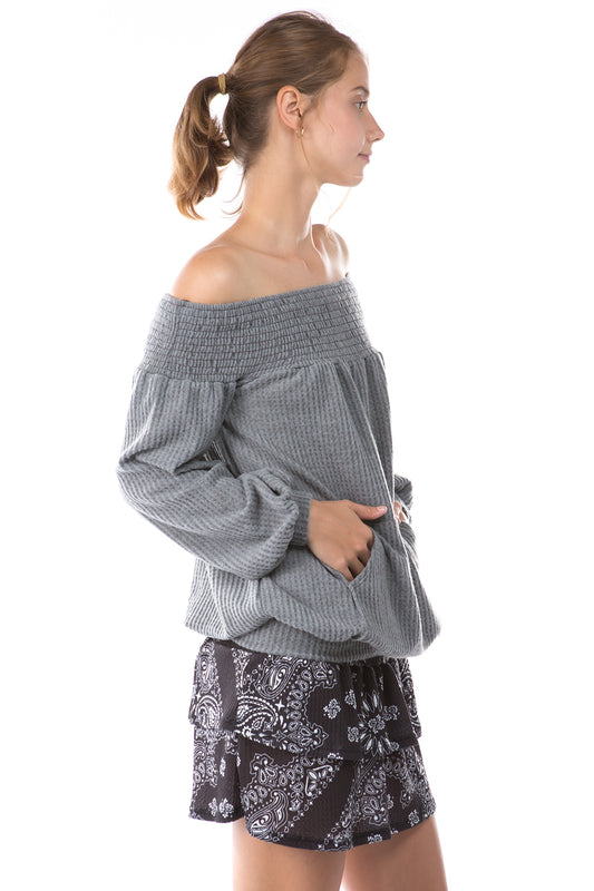 ALIA OFF SHOULDER TOP (BRUSH GREY)-VT2792
