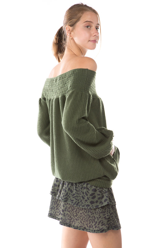 ALIA OFF SHOULDER TOP (BRUSH OLIVE)-VT2792