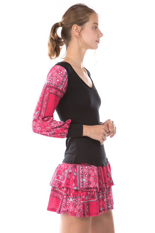 AGNES BUBBLE LONG SLEEVE TOP (BLACK/RED BANDANA)-VT2636