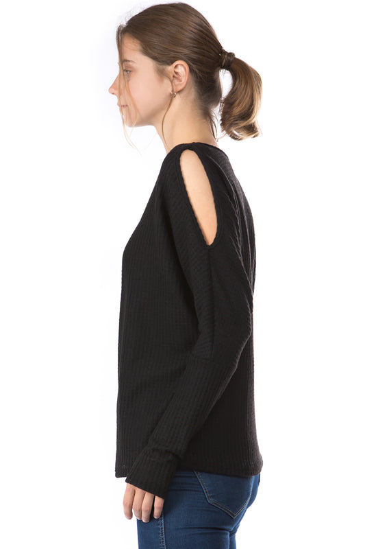 ALIA ONE OPEN SHOULDER TOP (BLUSH BLACK)-VT2791