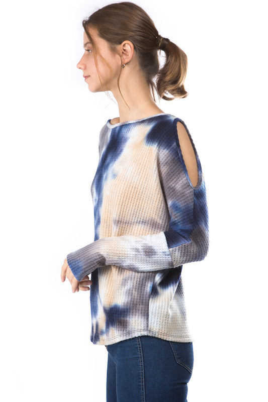 ALIA ONE OPEN SHOULDER TOP (BLUSH TAUPE BLUE TIE DYE)-VT2791