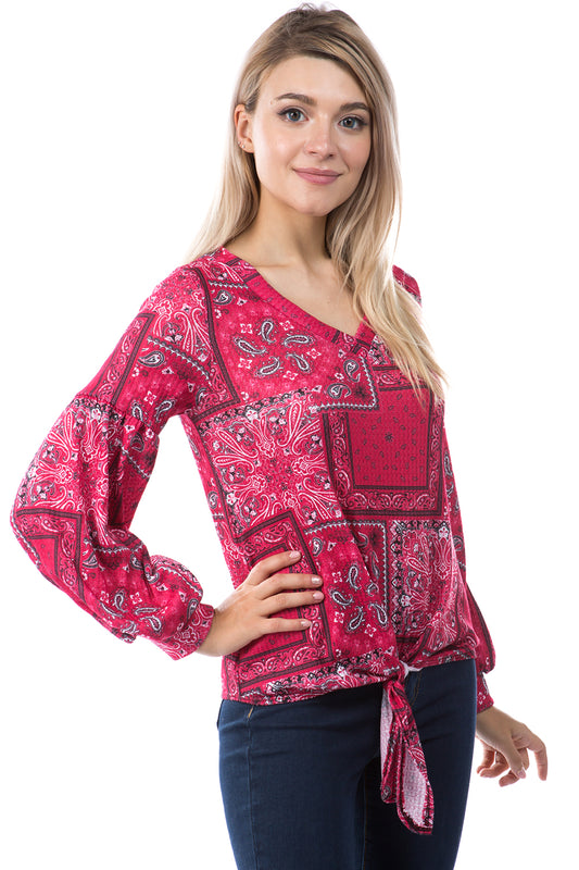 HATTIE V NECK TOP (BANDANA RED)-VT2798