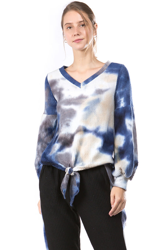 HATTIE V NECK TOP (BLUSH TAUPE BLUE TIE DYE)-VT2798T