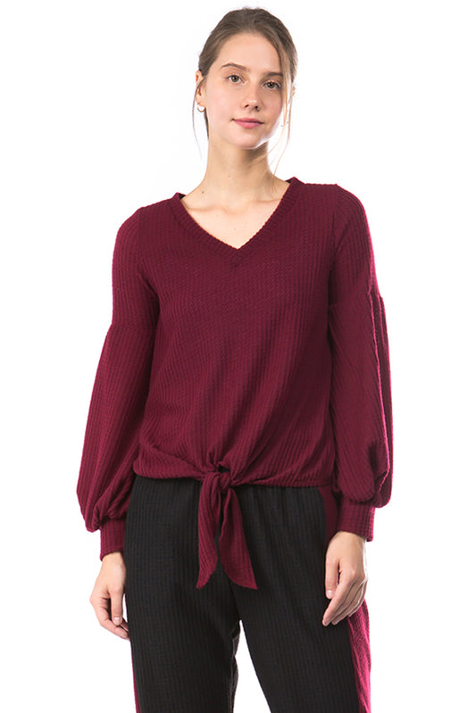 HATTIE V NECK TOP (BLUSH WINE)-VT2798