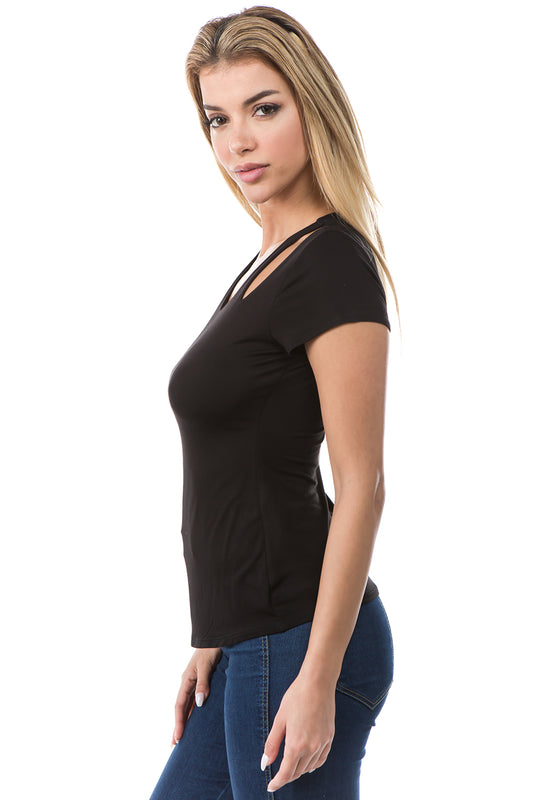 FIONA FRONT CROSS NECK TOP (BLACK)- VT2681