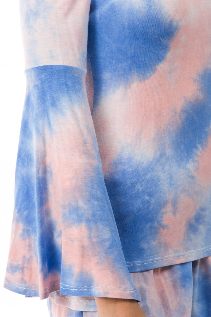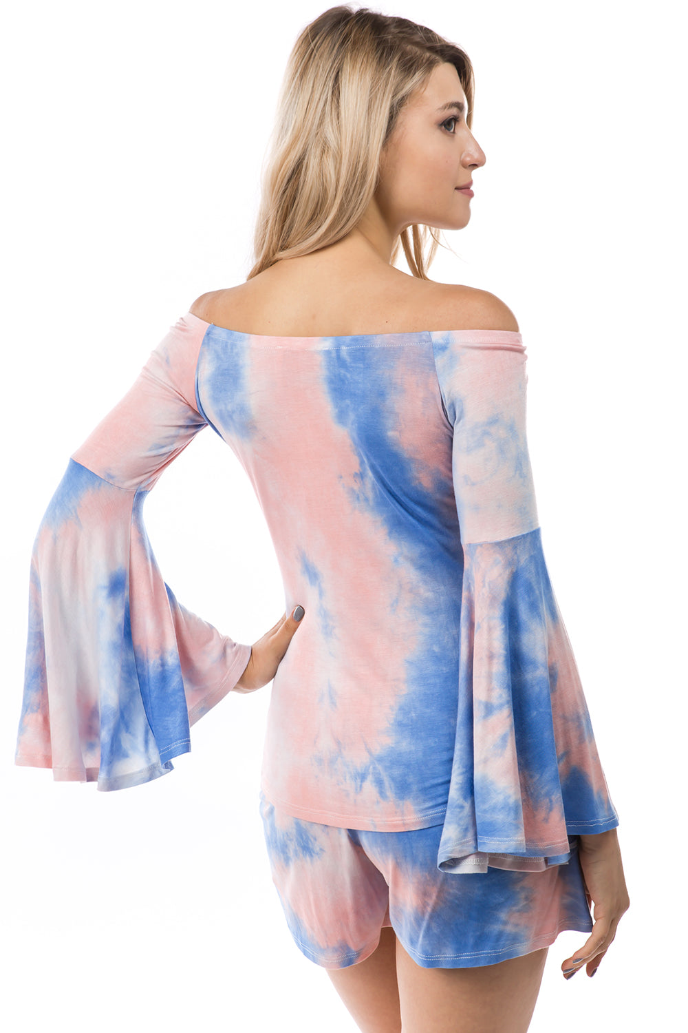 AMY OFF SHOULDER TOP (PEACH/BLUE TIE DYE)- VT2492T