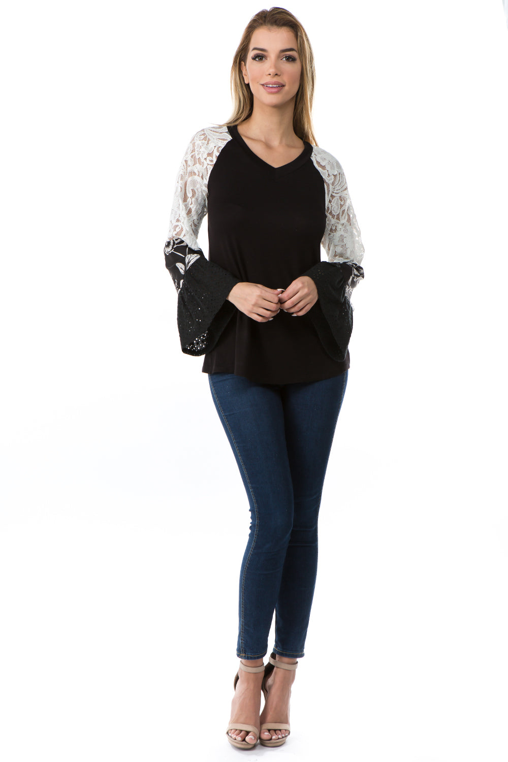 BIANCA RUFFLE SLEEVE TOP (BLACK)- VT2689