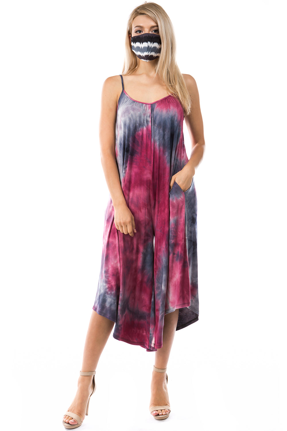 AGNES WIDE CAPRI JUMPSUITS (DARK MOON TIE DYE)- VD2765T