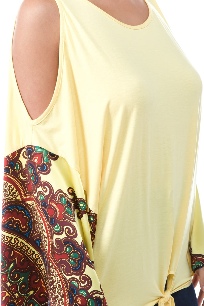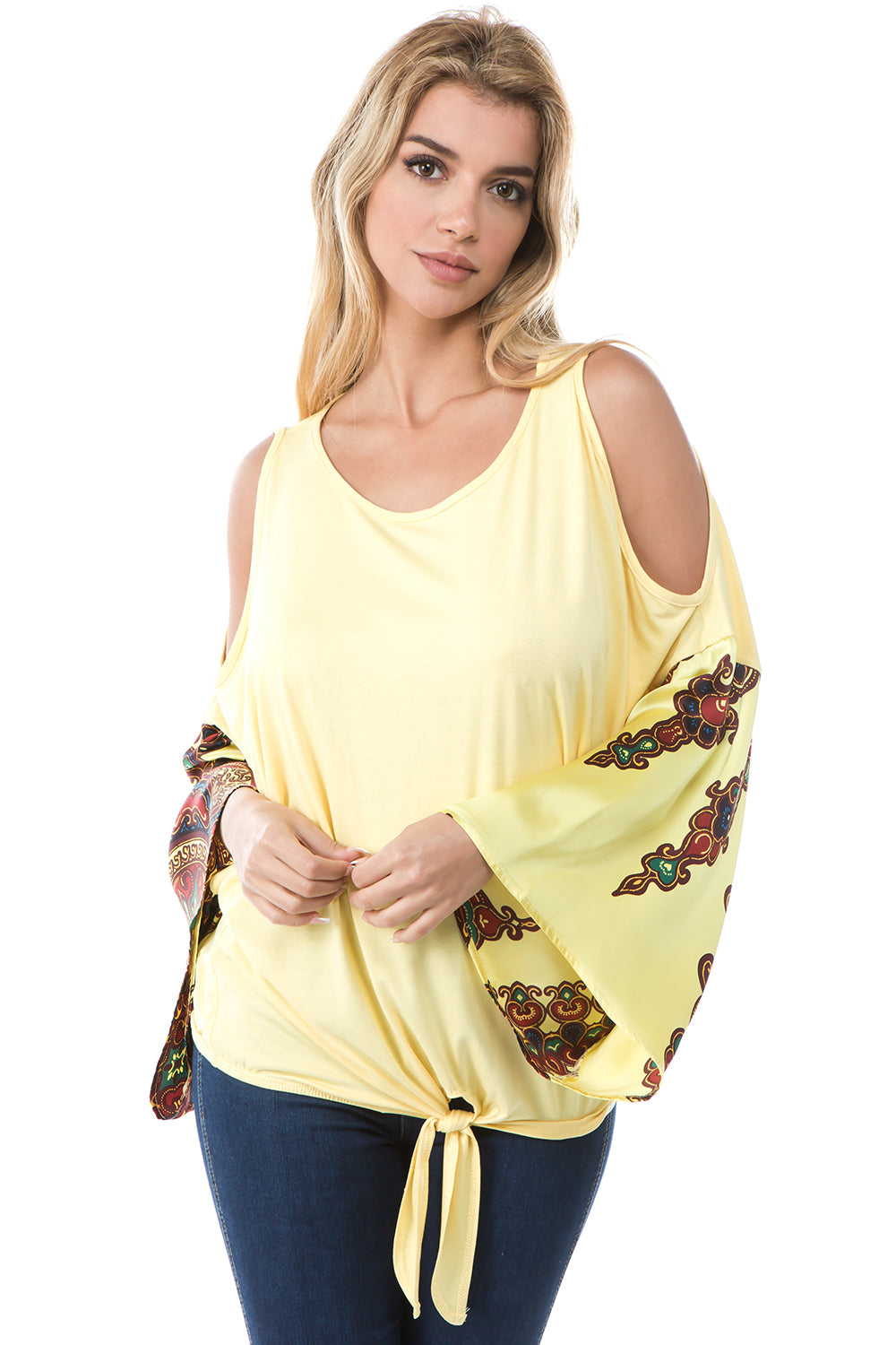 AVELINE COLD SHOULDER BLOUSON TOP (YELLOW)-VT2656
