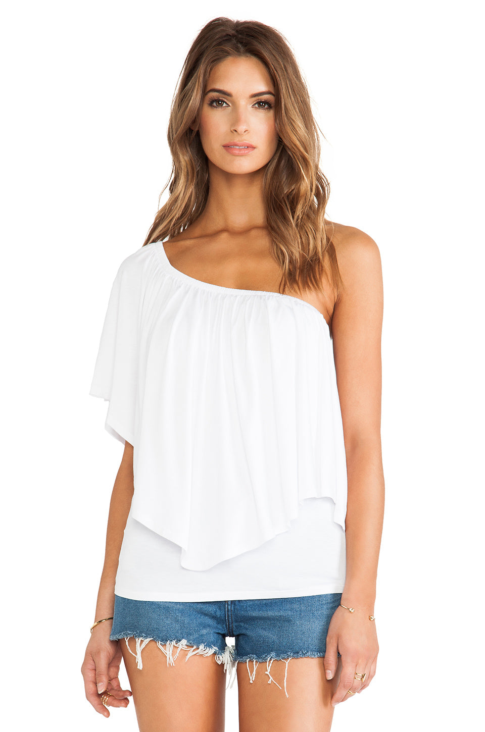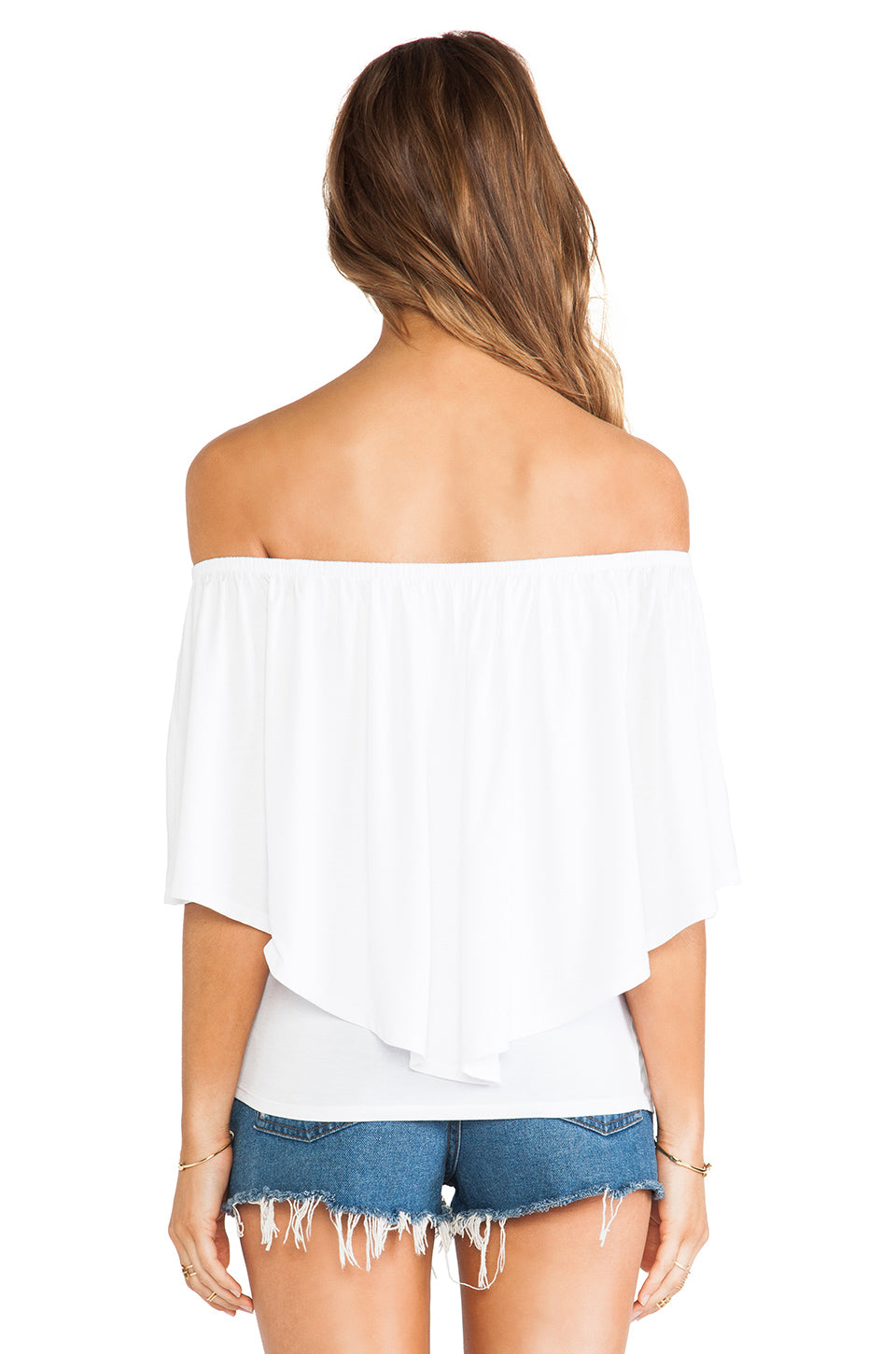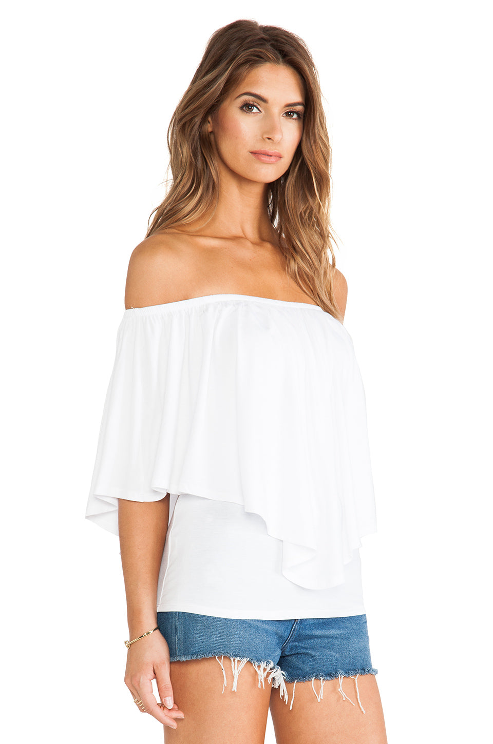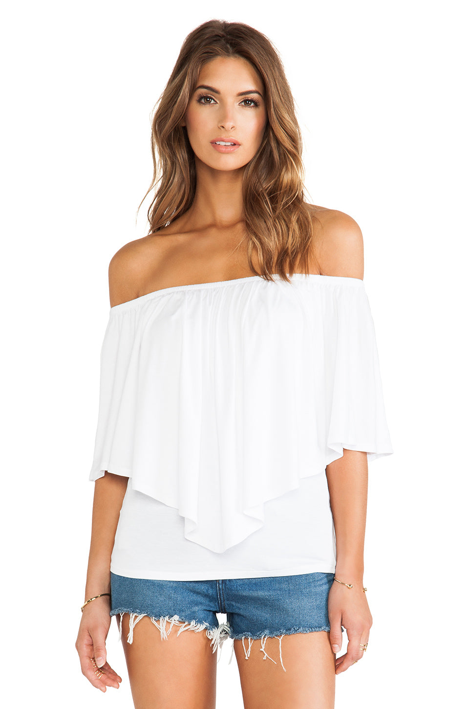 - Ruffle-overlay over the shoulder line