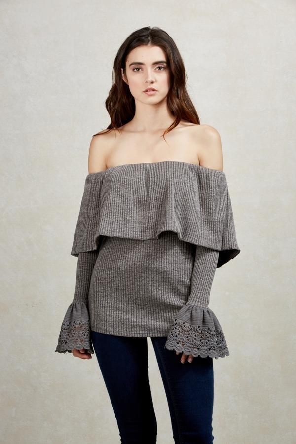 VALERIE OFF SHOULDER TOP (GREY)-VT1845