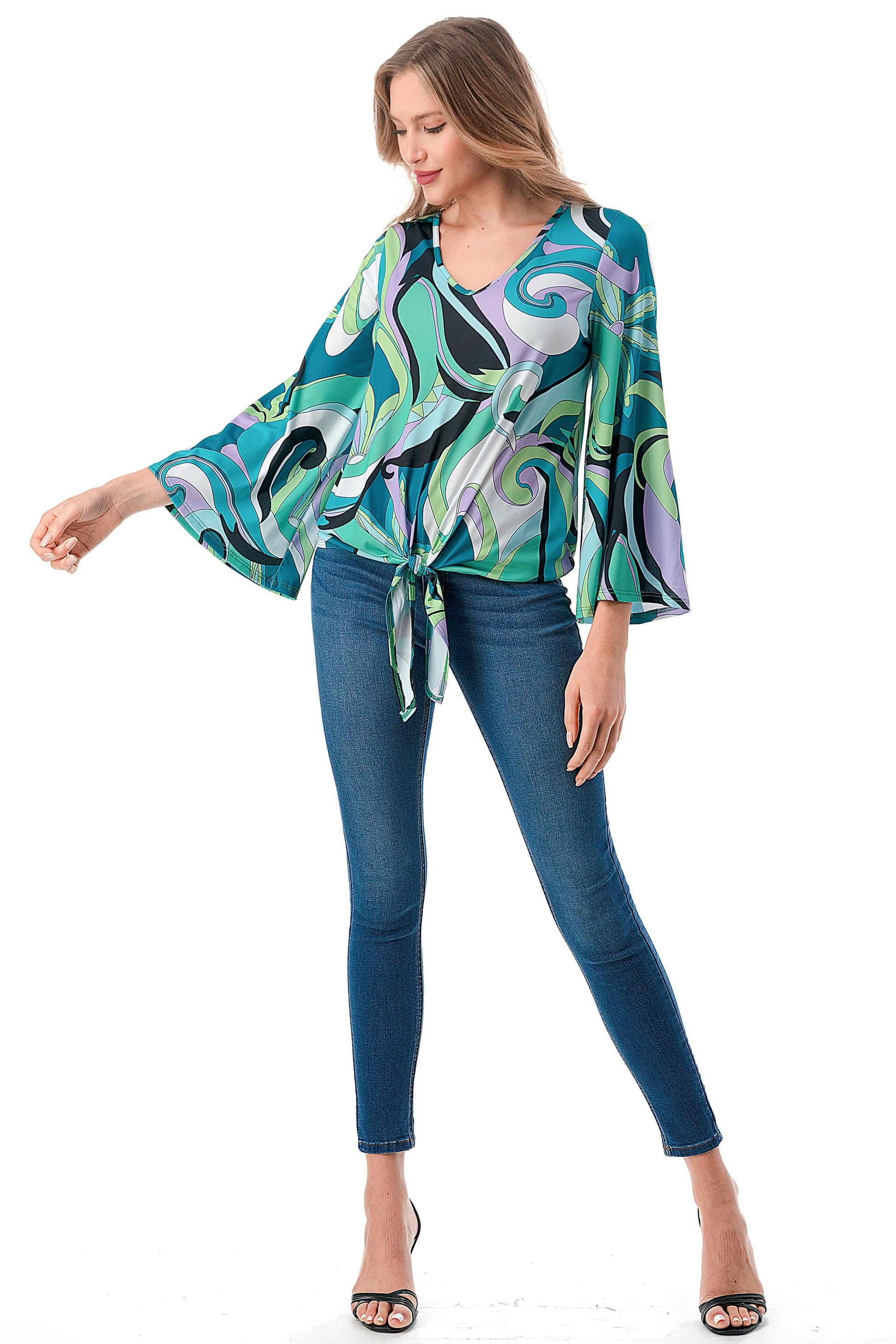ALIA FRONT TIE TOP (GREEN PUCCI)- VT2789