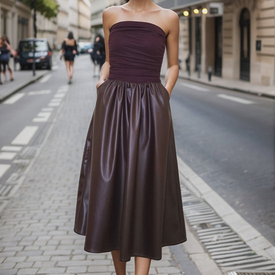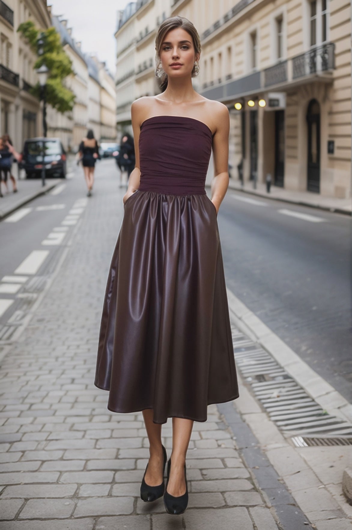 MIMI TUBE DRESS (DARK WINE VEGAN LEATHER)- VD3330PU