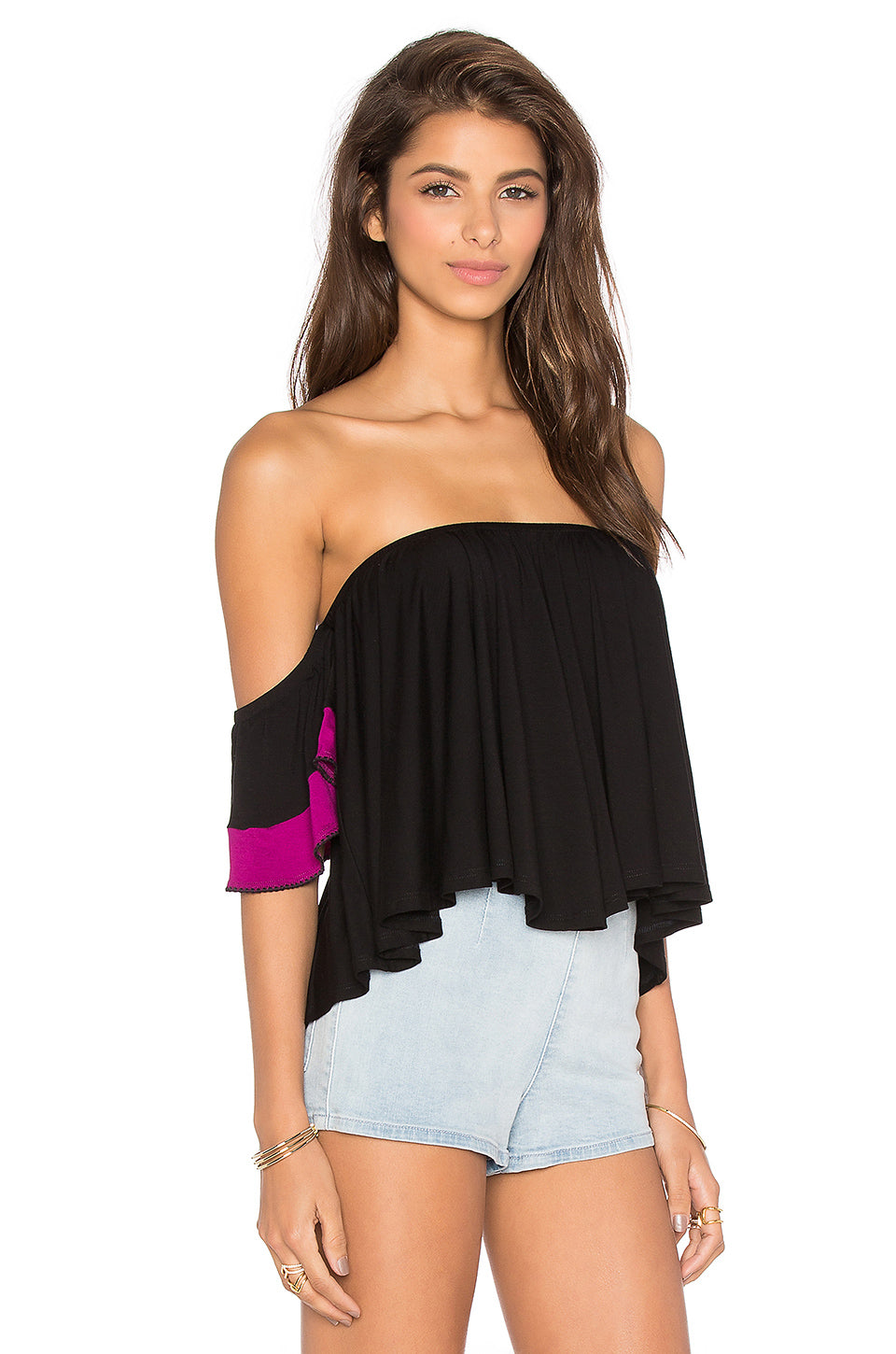 - Color blocked fall-off sleeves